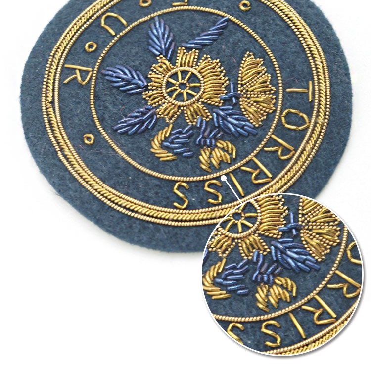 印度絲繡花章,早起源于印度,故又稱印度絲徽章、銅絲徽章、彈簧絲徽章、印度繡花章、金屬刺繡章等,采用印度特有的金屬線為主要材料,并用傳統(tǒng)的手工藝?yán)C花,一針一線刺繡而成。其手工精細(xì),令人嘆為觀止,繡出來的產(chǎn)品高檔華麗,層次分明。